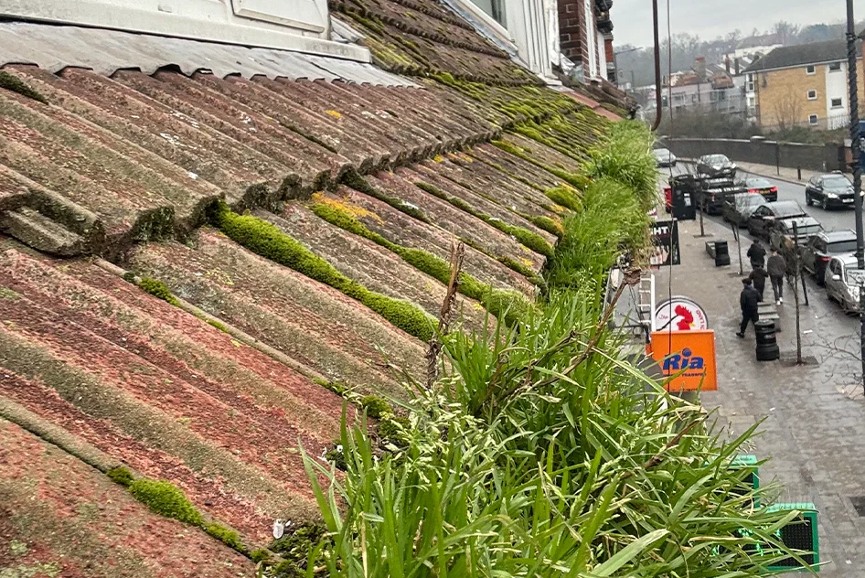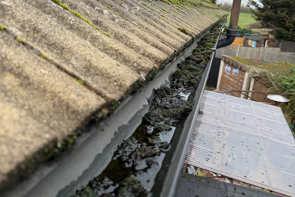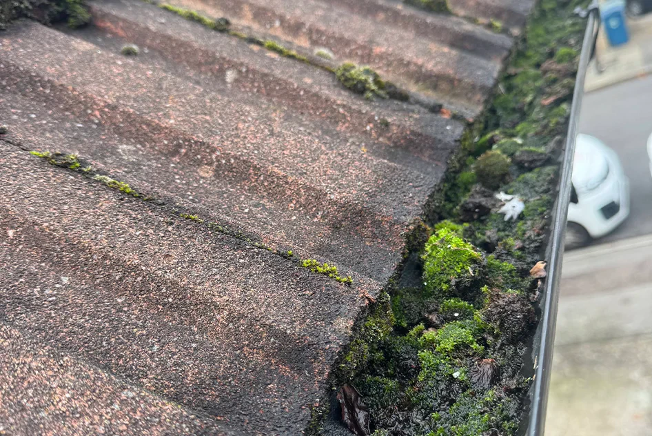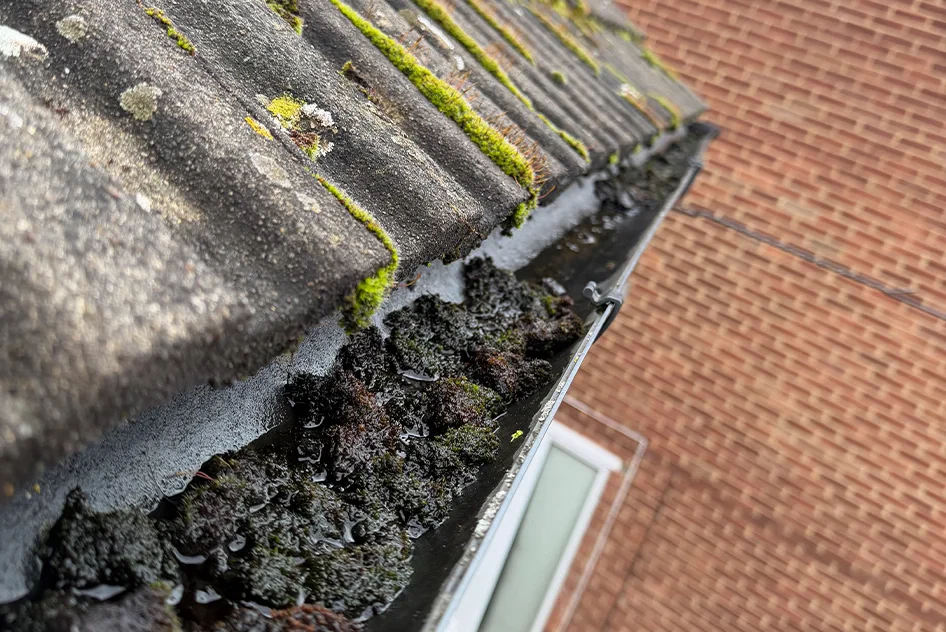 Stagnant water and debris in gutters attract mosquitoes, wasps, and birds. Moss and leaves create nesting material. Blocked downpipes also cause rats to climb up looking for water sources.